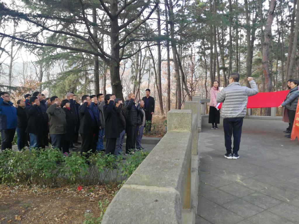 在庄严肃穆的革命烈士纪念碑前,院党委委员、教工党支部书记刘强德向革命烈士敬献花篮,深切缅怀革命先烈的丰功伟绩,并带领学员面对鲜红的党旗庄严宣誓,重温入党誓词。随后,全体学员绕行纪念碑基座一周,表达对革命先烈的无限敬仰和深切缅怀。