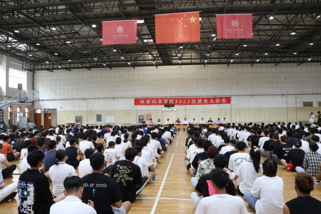 2023级新生见面会于学院篮球馆隆重举办。体育学部党委书记刘敏,体育学部主任、疯av