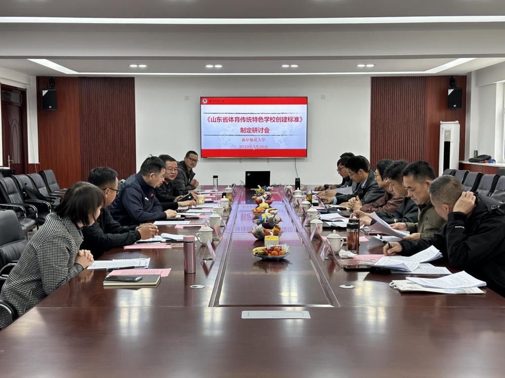 会议室召开,山东体育局青少处副处长张强、省体育标准化技术委员会副秘书长邢亮、来自全省各地市体育教研员、教练员、中小学体育教师代表、院长姜付高等共计20余人参会,会议由学院副院长伊超主持。