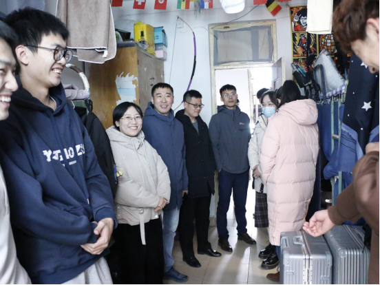 辅导员唐海峰、栾永鑫、王冰、郗来军、周晗深入学生宿舍,向同学们传达热情问候与殷切期望。