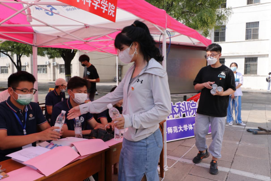 学生党员统一佩戴党徽,早早地在迎新点等候着新生的到来,用心用情用力,投身迎新一线,充分发挥模范带头作用,为他们摆放纸杯提供饮水便利,校园内外搬运行李,引导路线,答疑解惑,宿舍登记领取钥匙,办理入学报到的手续等,各项工作在各位党员同志的带领下进行的井井有条。在整个迎新过程中,虽然工作比较繁琐,但他们毫不懈怠,努力做到细致、周到、规范、有序,他们的耐心、细心让每位同学都感受到了温暖,充分体现了对新同学的热切期盼。