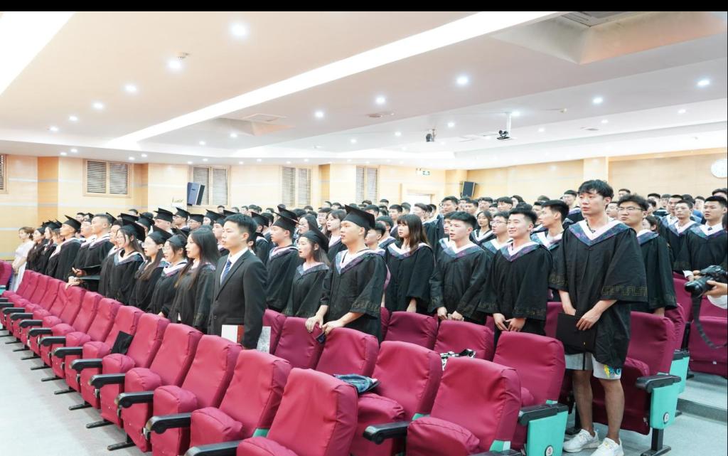 随后,播放各位领导教师及往届优秀毕业生寄语与集锦花絮, 与同学们回忆了在曲园的美好时光。最后,曹莉老师、刘敏老师、姜付高老师上台为毕业生拨穗正冠,并颁发学位证书。