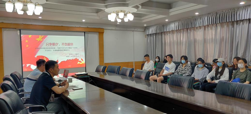 本科党支部于6月9日下午15点组织开展2022届本科毕业生党员最后一次党课,由学院党委副书记马振华做“只争朝夕,不负韶华”专题党课,进一步在本科毕业生党员中加强党性教育、服务意识教育、组织纪律教育,全面提高毕业生党员党性修养,能够在今后的工作岗位中发挥先锋模范作用。此次活动由疯av