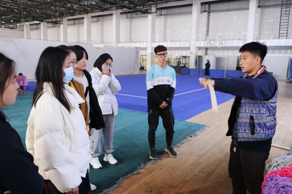 孔子射艺社团社长于文豪进行弓箭制作的基础讲解