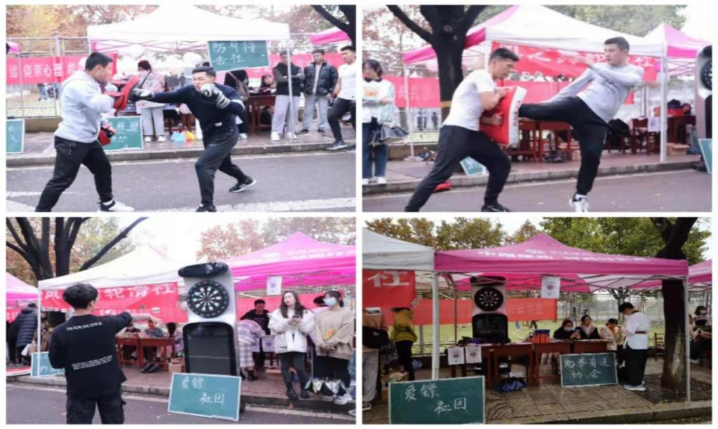 纳新的社团有:舞蹈协会、曲苑孔子射艺社、电子竞技社、爱镖社团、防身搏击社、风之舞轮滑社、跆拳有道协会、夫子话剧团等。