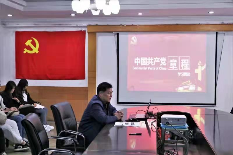于2021年10月31日上午在一楼会议室开展学习《中国共产党章程》专题党课。党委书记刘敏担任主讲,党委副书记马振华,党支部书记唐海峰老师,辅导员刘京老师、栾永鑫老师、王冰老师、郗来军老师及我院2021年第三批发展对象参与了党课学习。