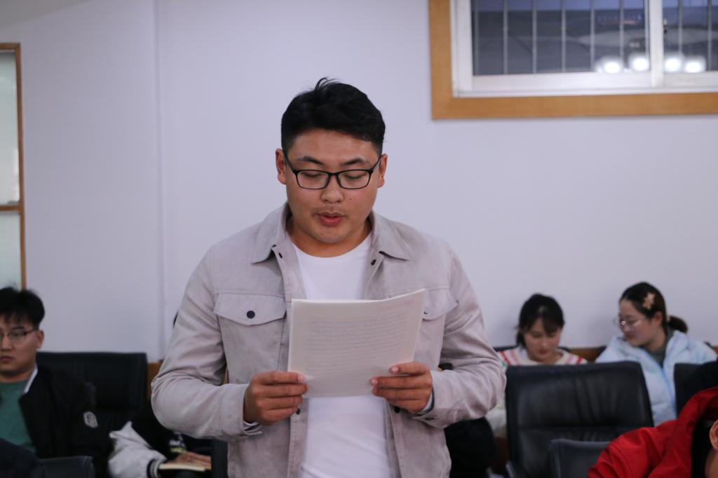 最后,党支部书记唐海峰同志进行总结,希望郗来军同志不断加强业务学习,提高履职担当本领,不断推进学院管理体制建设,做新时代忠诚、有担当的党员干部。