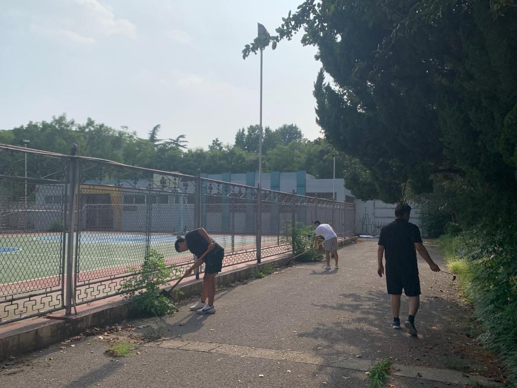 8月21日疯av 领导带领部分学生干部在教学楼前和南操组织集体劳动,为同学们营造一个干净、整齐、舒适的生活和学习环境。
