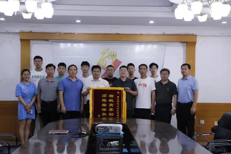 为对我院教育实习工作表示感谢,7月6日,曲阜一中政教处主任孔亚光、体育教研组组长孔凯向我院赠送“培桃育李初心,顶栋架梁矢志”锦旗。并对我院输送的实习教师质量、教学能力、出色表现表示高度认可和肯定。