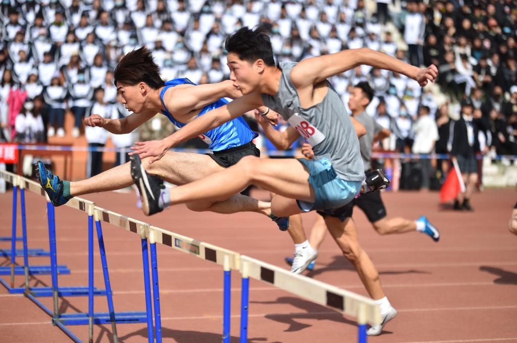 乙组男子110米栏比赛中,2020级学生孙晨以14秒30的成绩获得冠军。
