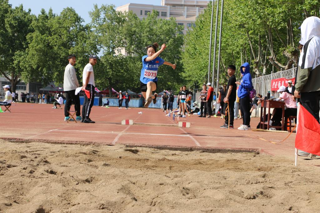 乙组女子三级跳远比赛中,我院运动员秉承友谊第一,比赛第二的原则,在互助中进步,用最好的状态展现出最高的水平。