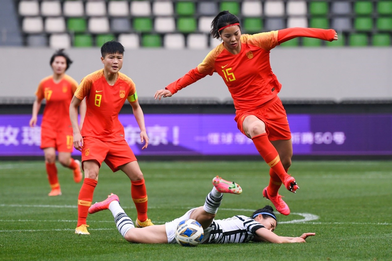 师大疯av讯 2021年4月13日,中国女足在东京奥运会女足亚洲区预选赛中以总比分4-3战胜韩国队,成功晋级,获得东京奥运会参赛资格。我院2014级运动训练专业毕业生杨曼替补出场,发挥关键作用,为球队取胜做出了重要贡献。