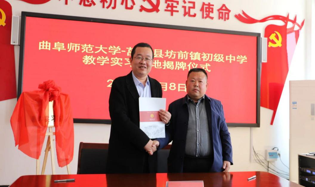 在学校派驻莒南县坊前镇第一书记工作组的支持下,在莒南县坊前中学举行教学实习基地揭牌仪式。学院党委书记刘敏、院长助理曾凡鑫、伊超等,疯av