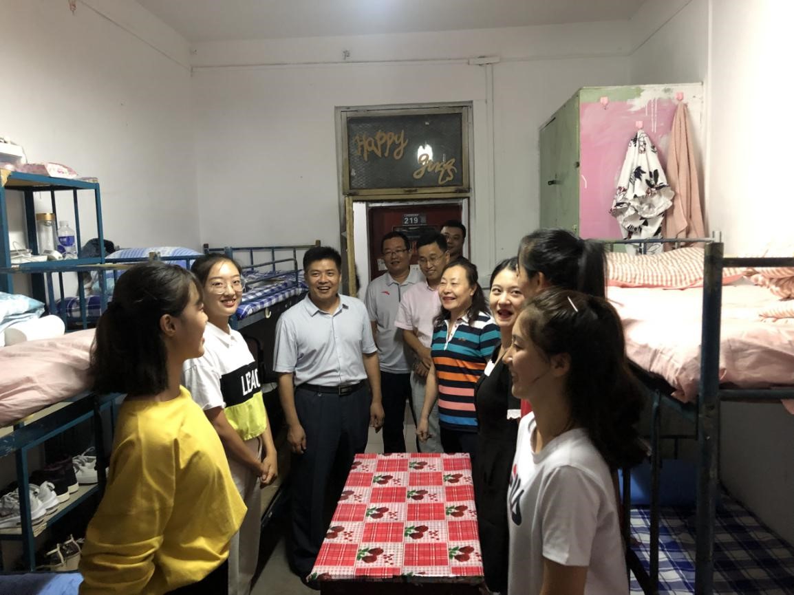 党委书记刘敏、院长曹莉、党委副书记展利民、副院长韩春利、院长助理伊超、团委书记梁贺涵以及各年级辅导员一同走访了2019级学生宿舍,看望并亲切慰问了2019级新生,与他们面对面交谈,给刚入学的新生带去了家一般的温暖。