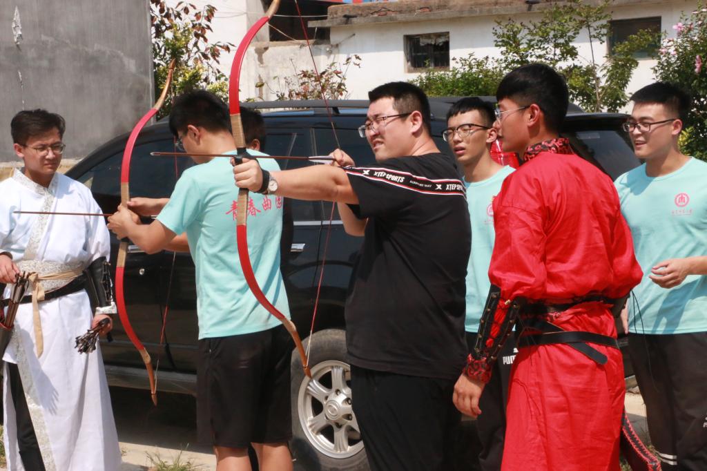 7月13日,山东省邹城市城前镇榆官村户外广场,一场由大学生和村民编排合演的“射艺秀”吸引了四面八方的乡亲,越聚越多的村民为朝气蓬勃的射艺表演送上了一阵高过一阵的喝彩。