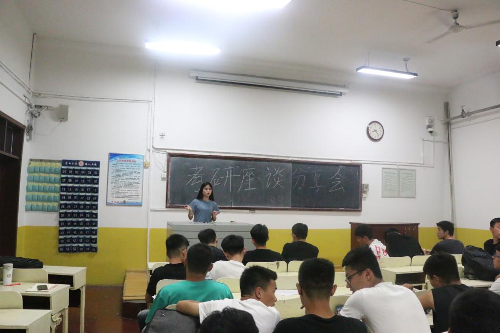 考研座谈分享会于5月22日晚7:30在系楼209举办。2019届毕业生中的10名本科生学生代表分享了自己的考研经验。会议由体育学院团委副书记刘畅主持,部分本科生、研究生参加了此次会议。