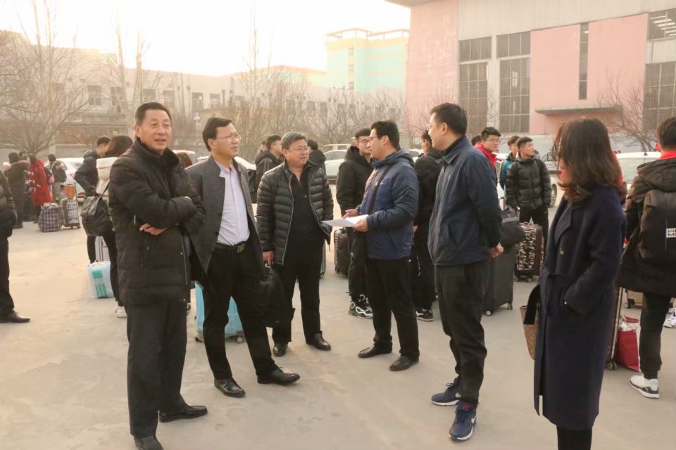 2016级68名本科师范生被山东省教育厅抽调到济宁、日照、临沂、淄博等四个地市的7个县区的中小学开展实习支教,早6:30—10:00,支教学生陆续来到学校西南门广场集合,体育科学学院党委书记荆兆清,党委副书记展利民,副院长李思民,团委书记梁贺涵,辅导员李士建、刘京等前来送行。