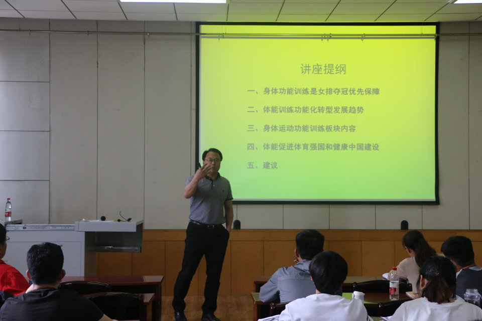 副院长李思民教授致欢迎辞,李院长说本期体能培训班本着“高起点,重实效,高浓缩”的原则,邀请国家体育总局领导、国内知名学者、具有丰富教学经验的体能训练专家授课,精心安排基础理论知识和实践操作技能。他希望通过本次培训能够让广大服务在一线的教练员们熟悉并灵活运用体能训练知识,真正能帮助运动员提高训练水平。