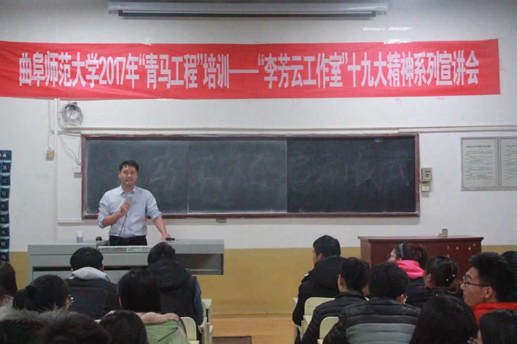 2017年“青马工程”培训班第二讲在院楼209教室举行。参加本次培训的主要成员有学生会主席王烁,学生会主席团成员、各部门主要负责人,以及2016、2017级主要学生干部。本次培训由朱斌老师主讲。