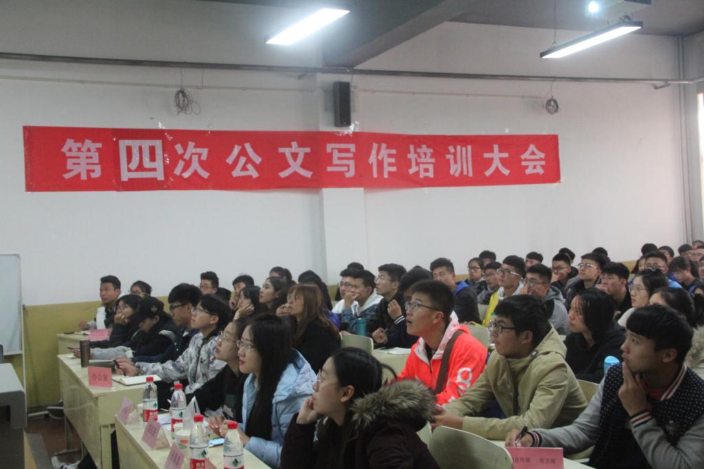 会议开始,首先由孙真真为大家介绍了公文写作的基本规范,她以一则材料为例,详细说明了公文写作的格式、内容。紧接着又讲述了通知、证明的写法。在讲述期间她还与同学们积极交流,对同学们现场提出的问题一一进行了解答。然后栾田田以诙谐幽默的语言向同学们讲述了工作计划、工作总结和讲话稿的写法、基本要求及注意事项。最后由辛琦讲述策划书、邀请函和倡议书的基本写作方法。在策划书方面,她特别强调了内容的真实性,准确性。在培训的整个过程中同学们全神贯注、认真记录、态度端正,营造了浓厚的学习氛围。最后,本次培训在同学们的掌声中落下帷幕。
