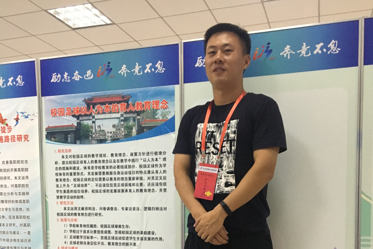 2015级研究生刘鸿滨、陈伟等同学参加会议,并进行了大会报告和墙报交流。刘鸿滨同学的《山东省国家级校园足球特色学校布局及评价研究》获得一等奖,陈伟同学的《校园足球以人文本的育人足球理念》获得二等奖。