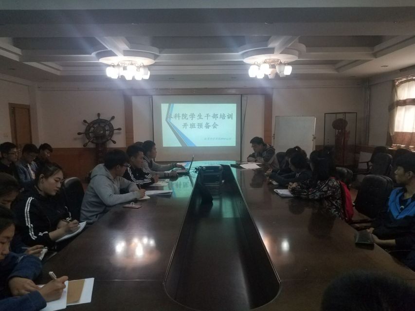 干训班开班预备会在院楼一楼会议室召开,参加本次大会的主要成员有学院党委副书记、干训班班主任展利民,学院2016级辅导员梁贺涵及干训班全体成员。