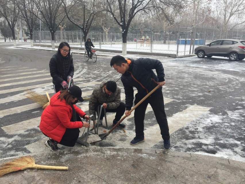 道路交通和学院正常教学带来的诸多不便,学院团委学生会成员积极响应学院的号召,投入到清除积雪的过程中去。