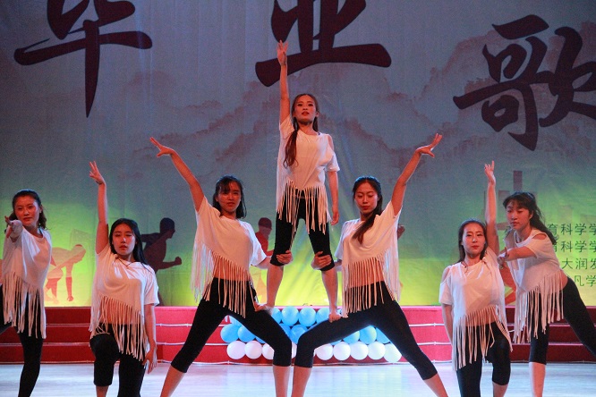 团总支承办。毕业晚会在一段大学四年的点滴生活的专题片中拉开了帷幕,随后在一场热辣的开场舞《Daddy》中晚会正式开始。本次晚会共分为两个乐章,第一乐章是光阴的故事,这一章的主旋律是忆往昔光阴故事,无论是《因为爱情》里面的羞涩,《最初的梦想》的朝气,还是《匆匆那年》的懵懂,都是在诉说着光阴的故事,唯美的音乐响起,表演者们用柔和的舞步,美妙的肢体语言表达对大学生活的怀念。他们以高贵优雅的现代舞,美妙绝伦的摩登舞,异样风情的新疆舞给观众带来了震撼的视觉盛宴。第二乐章是年轻的战争,这一章的主旋律是毕业生对即将踏入社会的自己充满着信心,无畏挑战。他们用劲爆激烈的竞技健美操,威猛霸气的搏击操,气势恢宏的集体舞表现出了他们拥有一颗无畏的心。由我院健美操老师带来的《倍爽儿》,将晚会的气氛推上了一个新的高潮。舞台剧《与青春有关的日子》博得了观众的阵阵掌声,表现出了老师对学生的美好祝愿和惜别之情,带了无限感动。