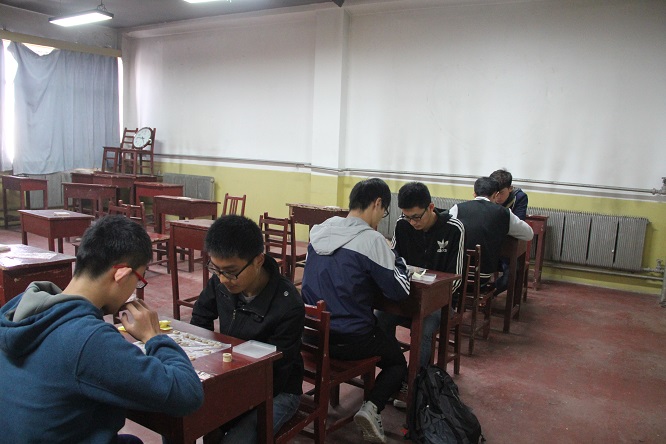 本次活动有棋艺类和益智类两种,棋艺类包括中国象棋个人赛、五子棋个人赛;益智类包括魔方竞技、九连环竞技、智力竞猜、最强大脑。活动开始前,各位选手抽签决定活动编号,每五个号码为一组进行比赛,魔方与九连环均为计时比赛,魔方最长时间10分钟,九连环最长15分钟。然后选出首轮每组的第一名进行第二轮的比赛,再选出次轮的每组第一名进行下一轮比赛,以此类推,决出前三名。智力竞猜游戏两名队员为一组,抽签决定出题目,一名队员用肢体动作表演,另一队员竞猜。棋艺类游戏一对一决战,获胜选手直接晋级,失败选手淘汰出局。活动各项目设置一等奖一名、二等奖三名、三等奖五名、优秀奖若干名。活动期间,各参赛者坚持“友谊第一,比赛第二”的原则积极参赛,充分展现了体育学子的青春风采。活动结束后,各位参赛选手友好握手并拍照留念。