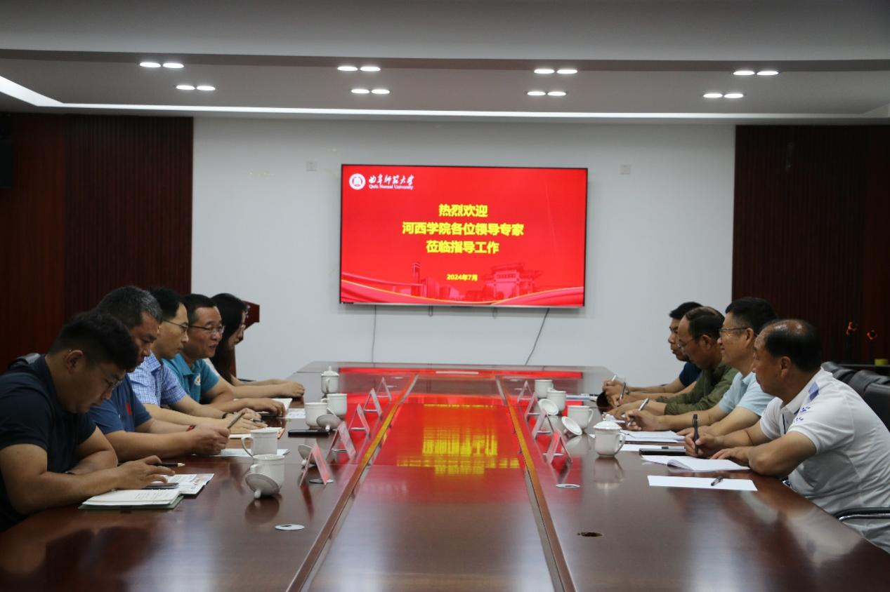 2024年7月7日,河西学院体育学院院长盛建国,河西学院体育学院教师刘茂昌、袁兴亮、丁斌来学院交流师范专业认证工作,体育学部党委书记许怀祥,体育学部主任、疯av