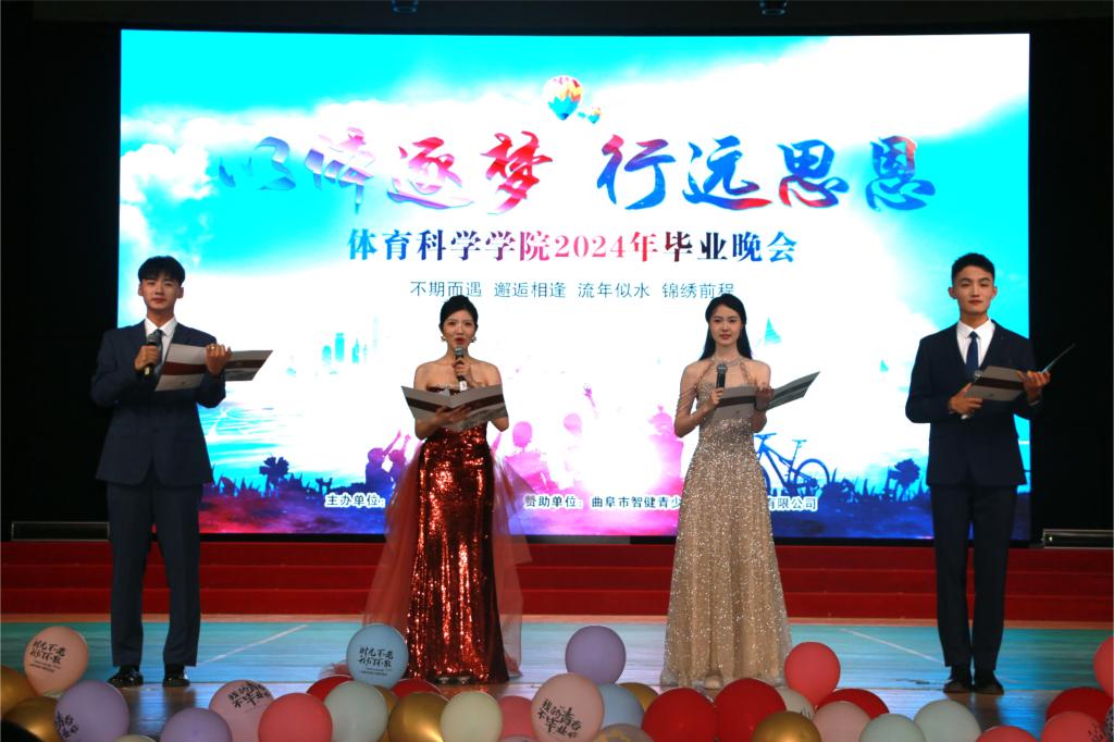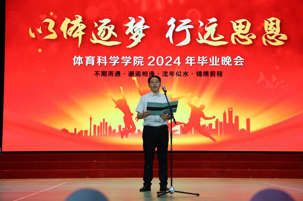 于大学生活动中心礼堂举办“以体逐梦,行远思恩”——2024年毕业晚会。体育学部党委书记许怀祥、体育学部党委副书记马振华、曲阜市智健青少年体育俱乐部有限公司董事长经迅捷、疯av