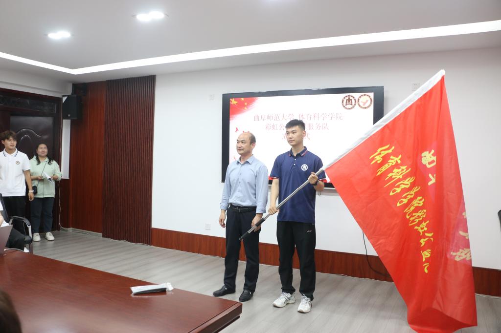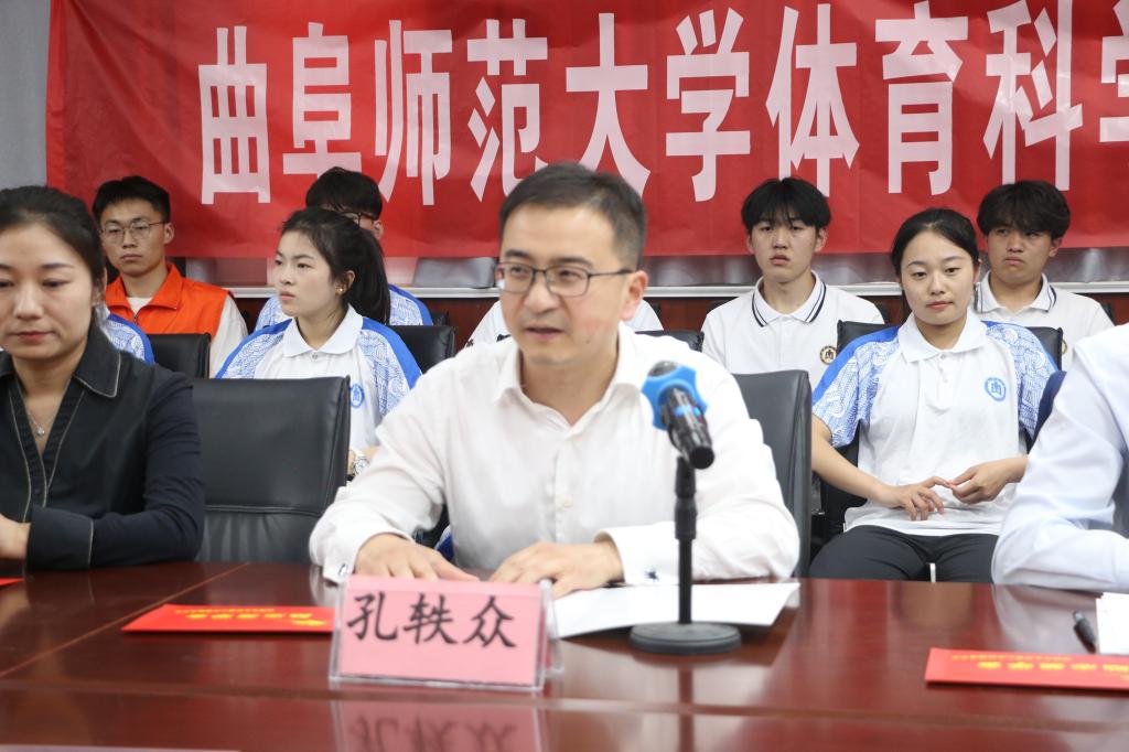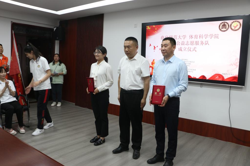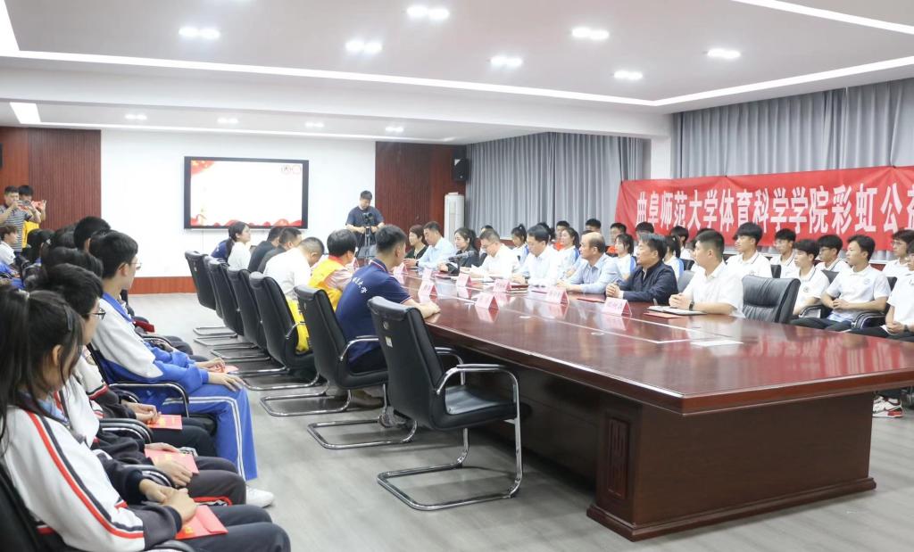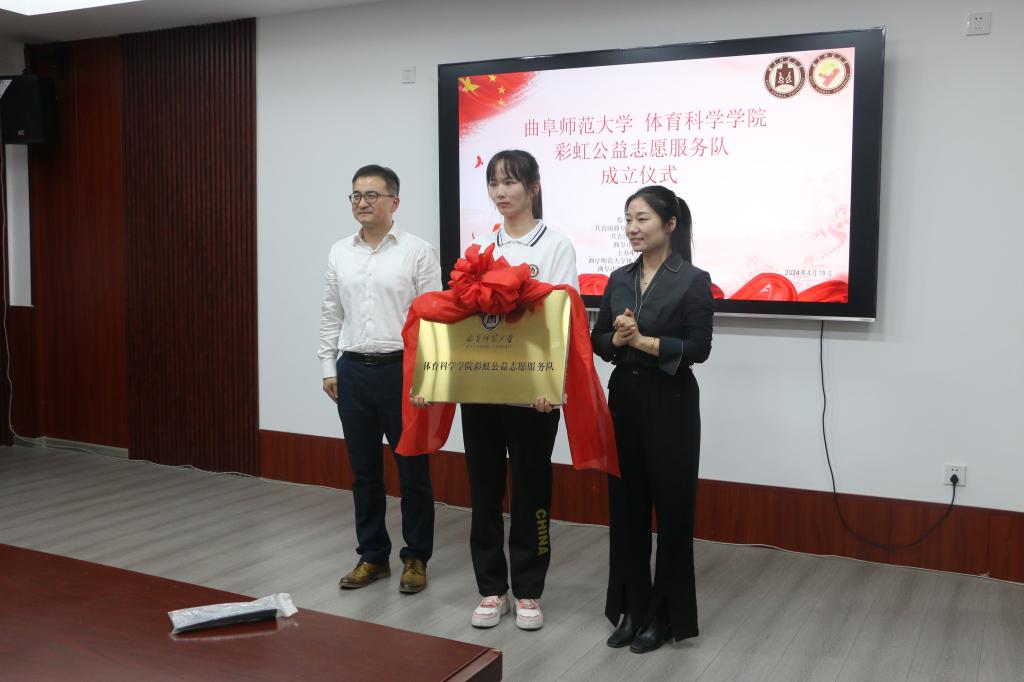 曲阜市彩虹公益服务中心理事长康绪虎为体育学部党委副书记马振华和疯av