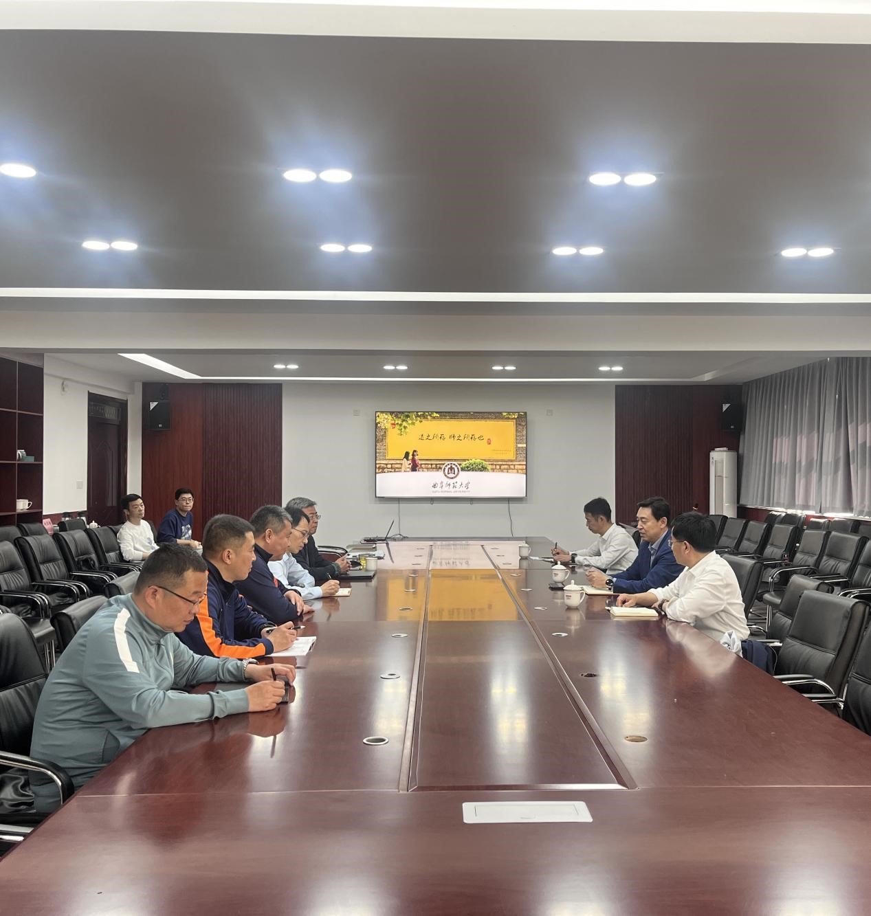 2024年4月12日,学校党委副书记、校长张洪海,教务处处长李傅山,党委办公室、学校办公室副主任鞠海彦一行莅临体育学部调研指导。体育学部党委书记许怀祥,体育学部主任兼疯av