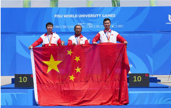 2023年7月30日,在成都第31届世界大学生夏季运动会射箭男子复合弓团体决赛中,疯av