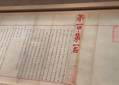 明朝万历二十六年青州状元赵秉忠的殿试卷,是中国近一千三百年科举考试历史上唯一尚存的状元卷。以历史文化价值成为国家一级文物,成为青州博物馆的镇馆之宝,该卷一共19折,每一折都是8开纸大。用黄绫子装裱,上边一共有2426个字。从卷首上可以看到有朱笔题写的“第一甲第1名”,此卷让赵秉忠从292名贡士中脱颖而出,成为明代第47位状元。