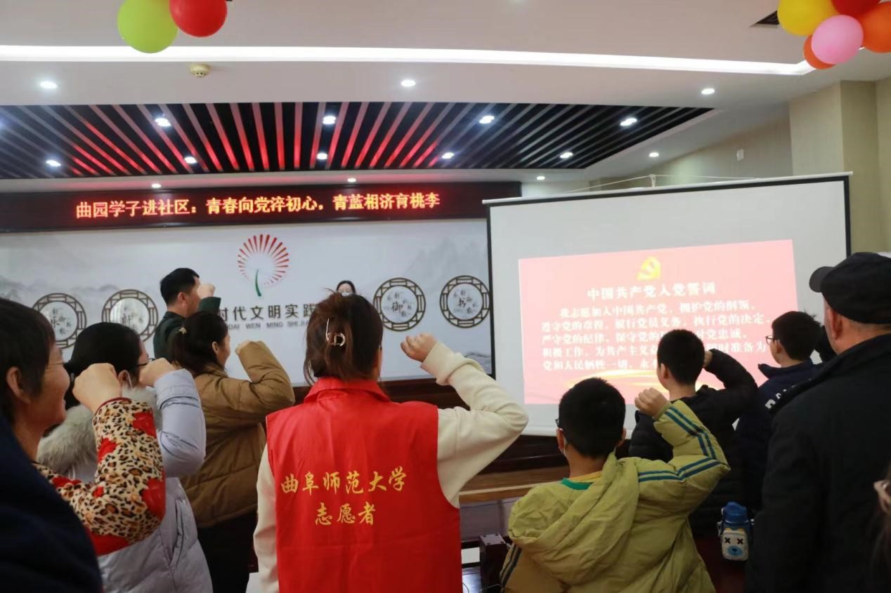 同时,“青春向党淬初心,青蓝相济育桃李”实践队队员们带领社区团员青年和少先队员们进行入团誓词和入队誓词宣读活动。入团誓词中的每一个词语都表达了对团组织的忠诚和对社会的奉献精神。通过重温入团誓词,进一步加深了社区团员青年对团组织的认识和理解,同时也明确了自身作为一名团员应该承担的责任和义务。入队誓词是少先队员们的庄重承诺,也是对组织的忠诚宣言。通过重温入队誓词,有助于帮助少先队员们时刻保持对组织的忠诚,遵守队规队纪,努力学习,明晰团结合作和奉献精神的重要性,为社区的发展和进步做出积极的贡献。