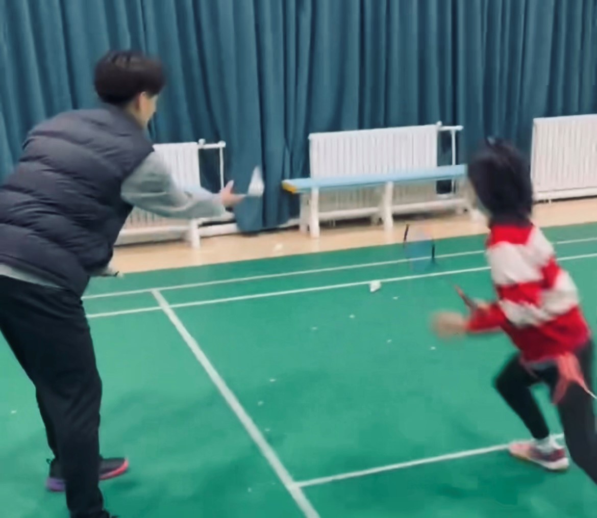 (图中为实践队员宋沛璟对学员进行多球低重心训练)
