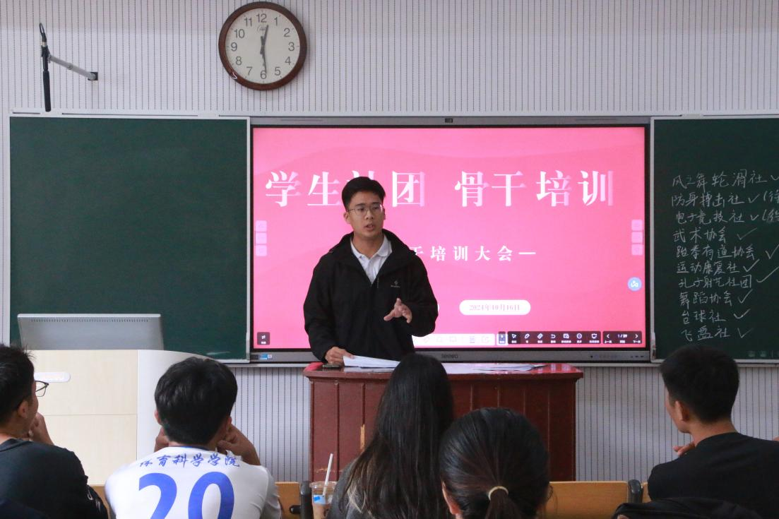 于学院210教室召开社团骨干培训大会。此次会议由体育科学学院学生会副主席兼社团管理部部长战良厚主持。