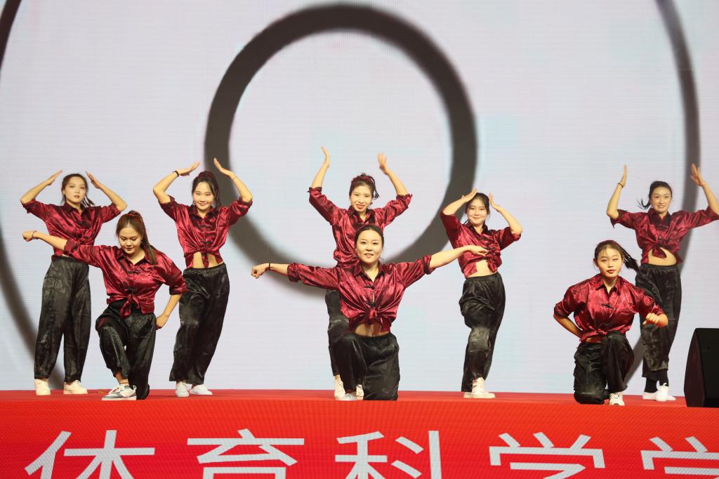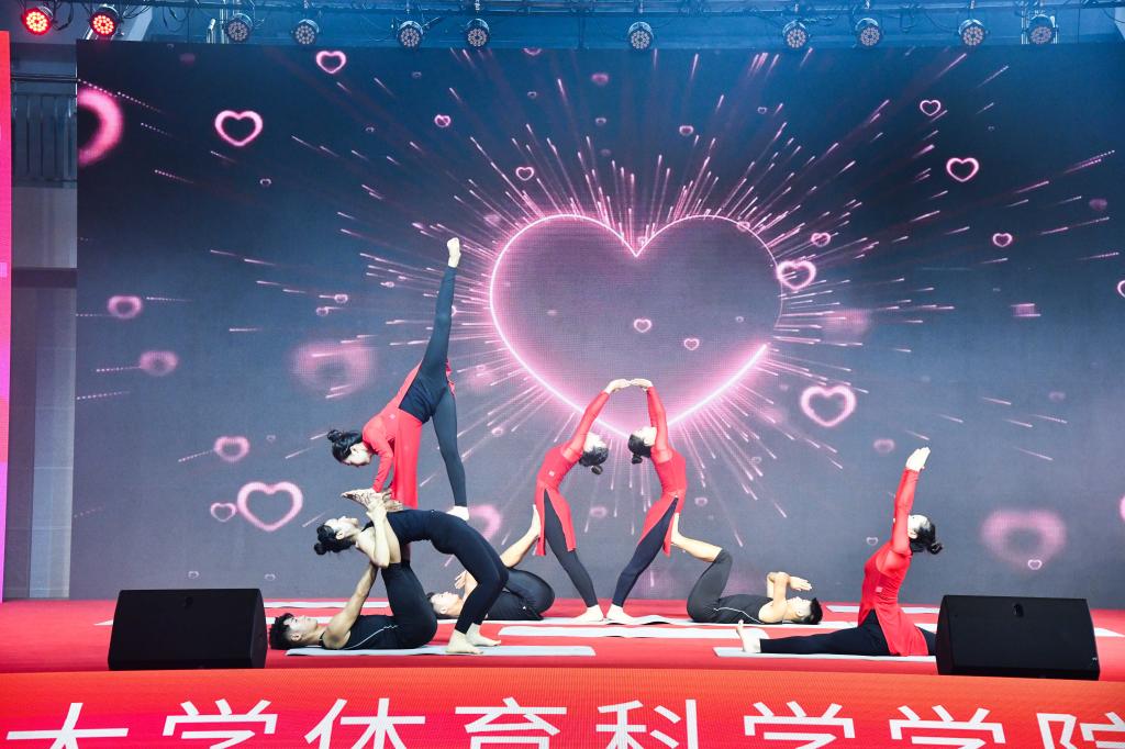 师生代表带来教学成果汇报演出,瑜伽、体操、篮球、足球、武术、射艺、街舞、跳绳等节目精彩纷呈,表达了疯av