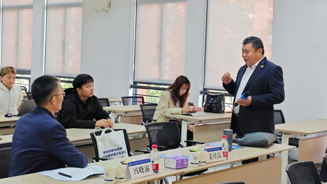 工作。随后,在每一位博士生报告结束后,姜付高教授都能迅速抓住报告的核心要点,从研究的创新性、方法的科学性、实践的可行性等多个维度进行精准剖析,以其丰富的学术知识储备和独到的见解,为报告人提供了深入且具有针对性的建议。他的点评风格沉稳而不失犀利,既充分肯定了博士生们的研究成果和努力付出,又能一针见血地指出存在的问题,展现出了一位资深学者的深厚学术素养和高度责任感。姜付高教授在点评过程中,还积极引导博士生们拓宽研究思路、抓住研究的关键问题,鼓励他们在体育学领域不断探索新的研究方向和方法,为推动体育学的发展贡献更多智慧和力量。