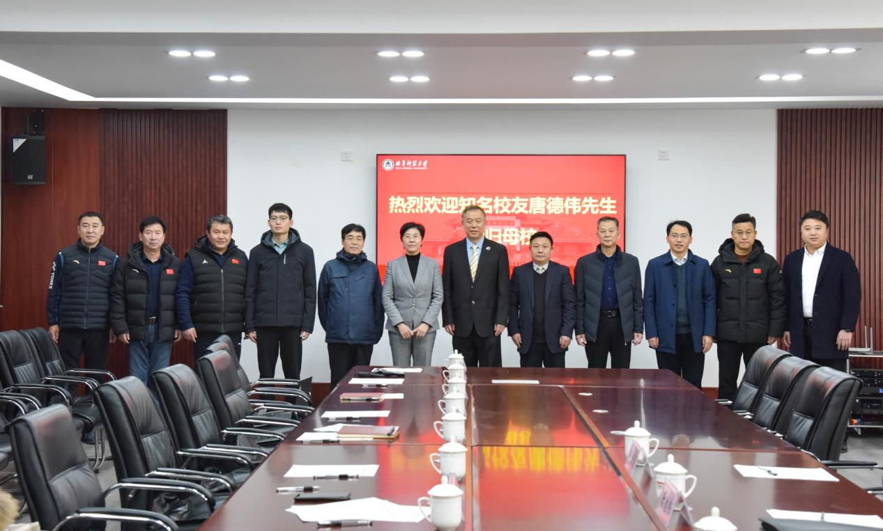 唐德伟表达了对母校的感激之情,介绍了美国排球协会、亨斯曼世界中老年运动会的相关工作,希望今后能深化交流合作,促进资源共享、实现优势互补,助力中华优秀传统文化走出国门、走向世界。