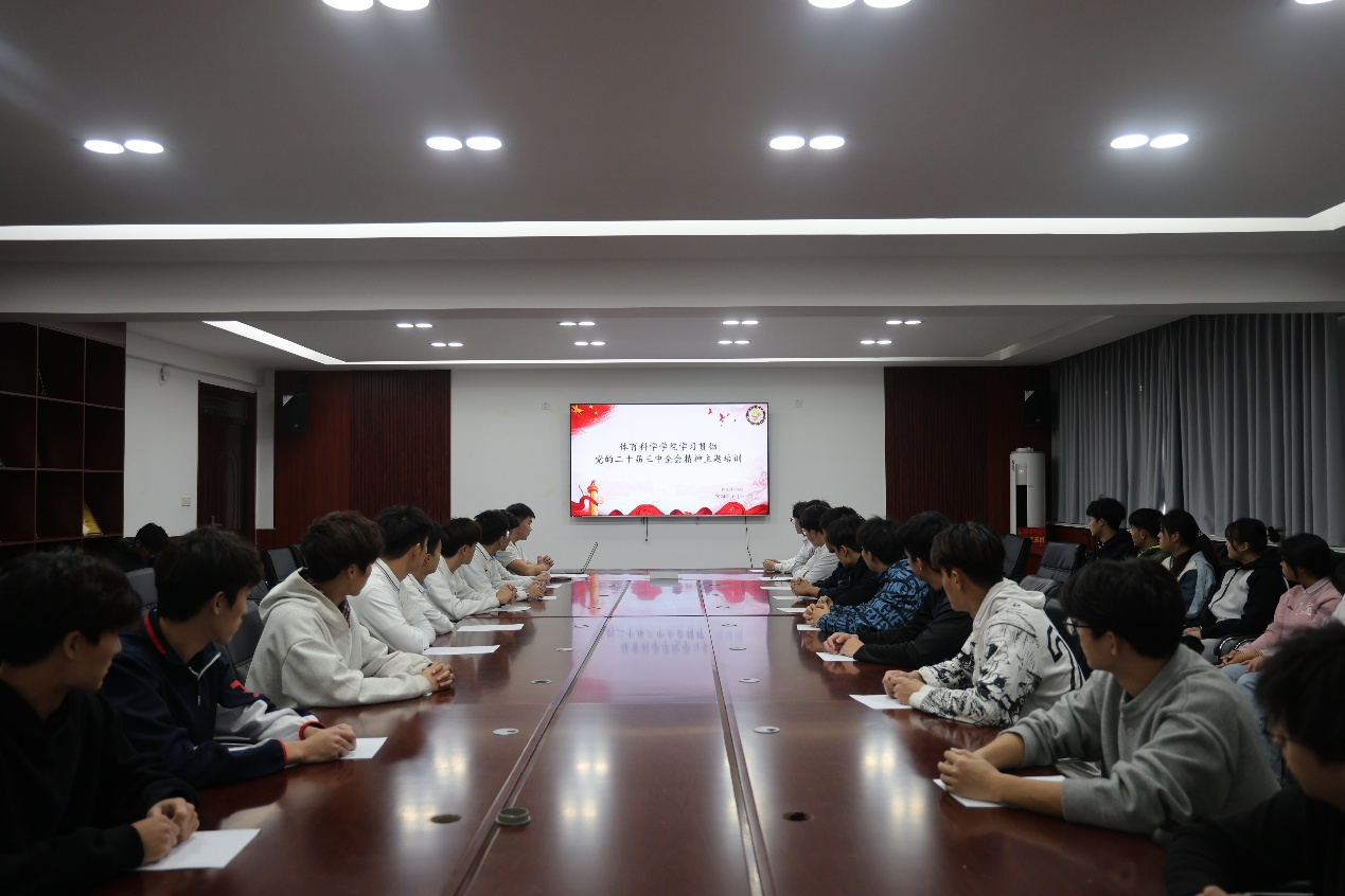 于10月13日在一楼会议室开展“跟党奋进,筑梦青春”——学习二十届三中全会精神,共绘新时代征程主题活动。办公室主任谷韩金作为宣讲人,50余名学生干部骨干参加培训。