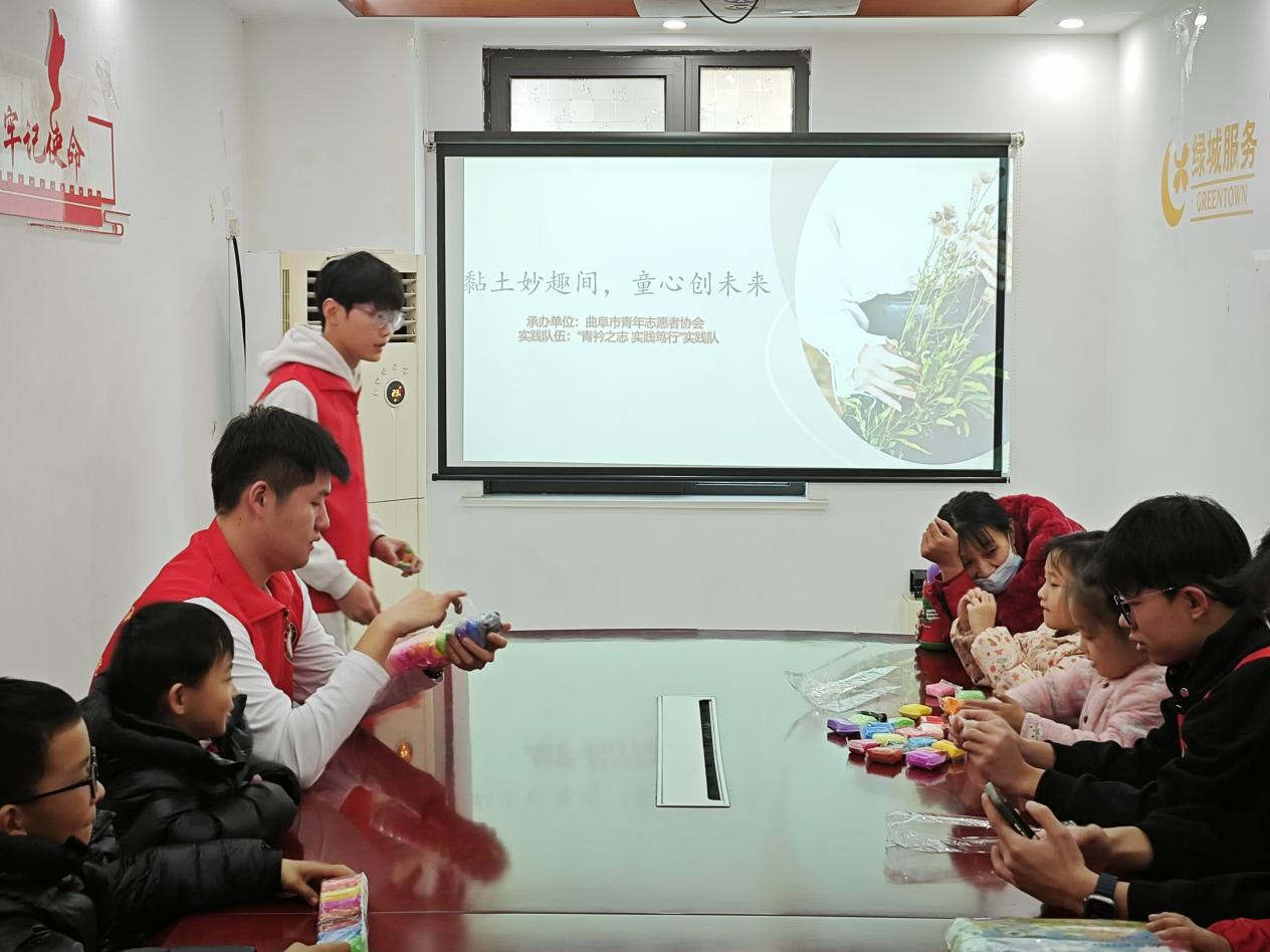 “青衿之志 实践笃行”实践队于曲阜市明文社区的活动室,进行“黏土妙趣间,童心创未来”的实践活动。