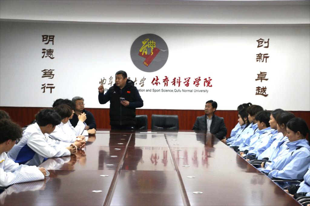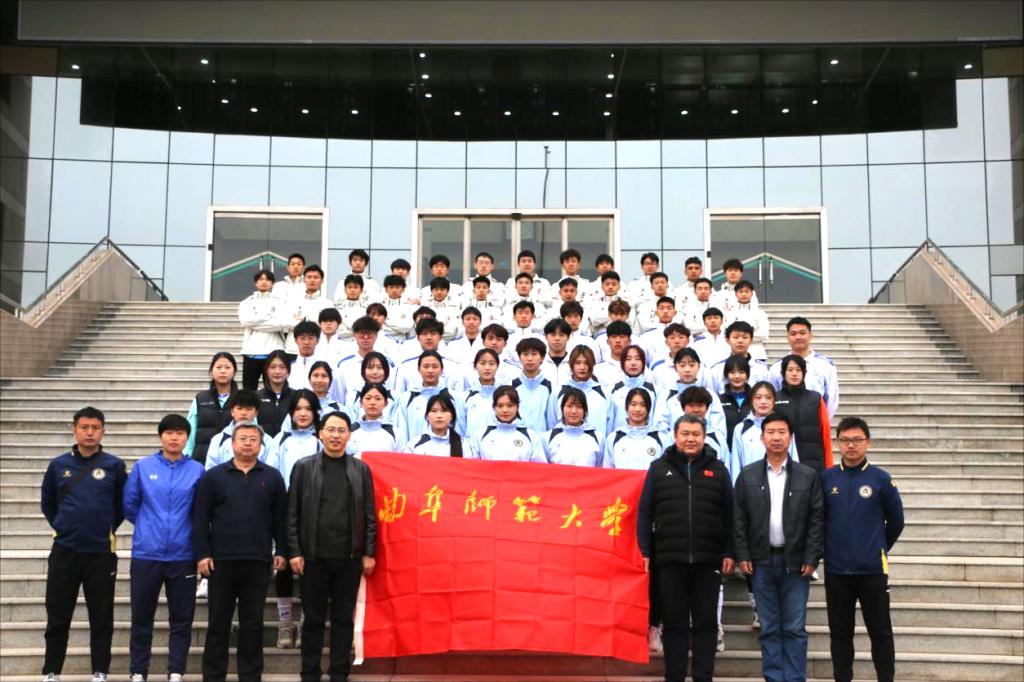 副院长、公共体育教学部副主任李思民,山东省乡村振兴体育研究院副院长曾凡鑫出席出征仪式,三支球队(高水平组、阳光组、女足)全体队员以及教练团队参加活动。