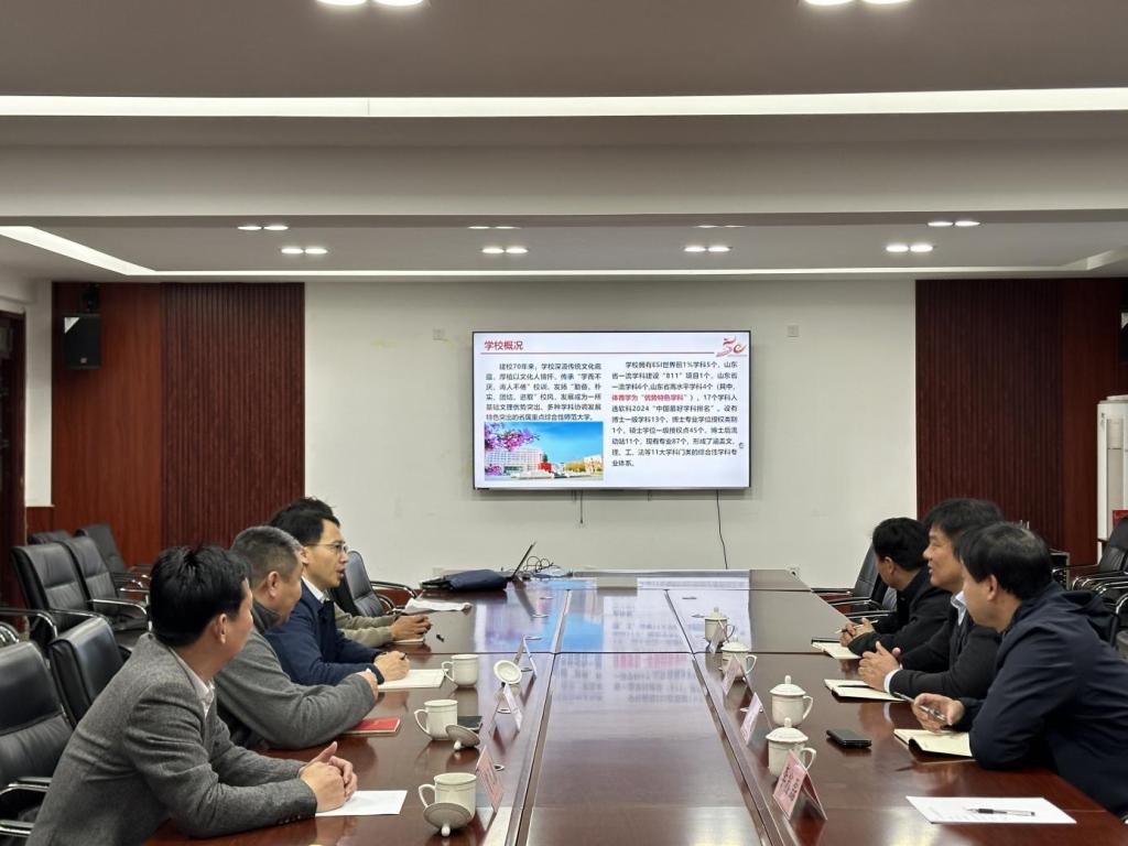 对河南师范大学一行的到来表示了热烈欢迎,随后通过宣传片简要介绍了学院在科研和人才培养方面取得的优异成绩,从学院情况、学院发展、人才培养等方面展示了学院的发展成果。随后,双方围绕人才培养模式创新、课程体系建设、实践教学改革、学科竞赛组织、师资队伍建设、科研团队组建与科研项目申报等共同关心的话题展开深入交流。