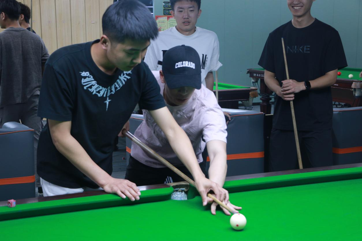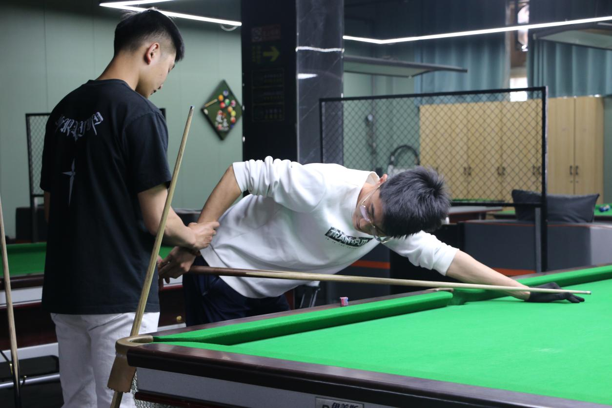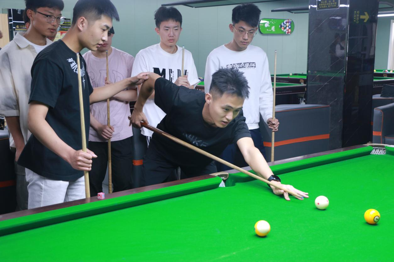 此次活动中,朋辈导师于祥宝凭借丰富的经验与专业能力脱颖而出。课程设计上,于祥宝精心规划了系统且全面的教学内容,从最基础的握杆姿势、发力技巧,到复杂的母球走位控制、击球策略,每一个环节都进行细致入微的讲解与示范。在授课过程中,他充分发挥朋辈优势,以耐心亲和的教学方式,结合自身实践经验,让同学们轻松掌握台球运动的精髓。无论是零基础的初学者,还是有一定基础的爱好者,都能在课堂中收获成长,提升台球技艺,享受运动带来的乐趣。