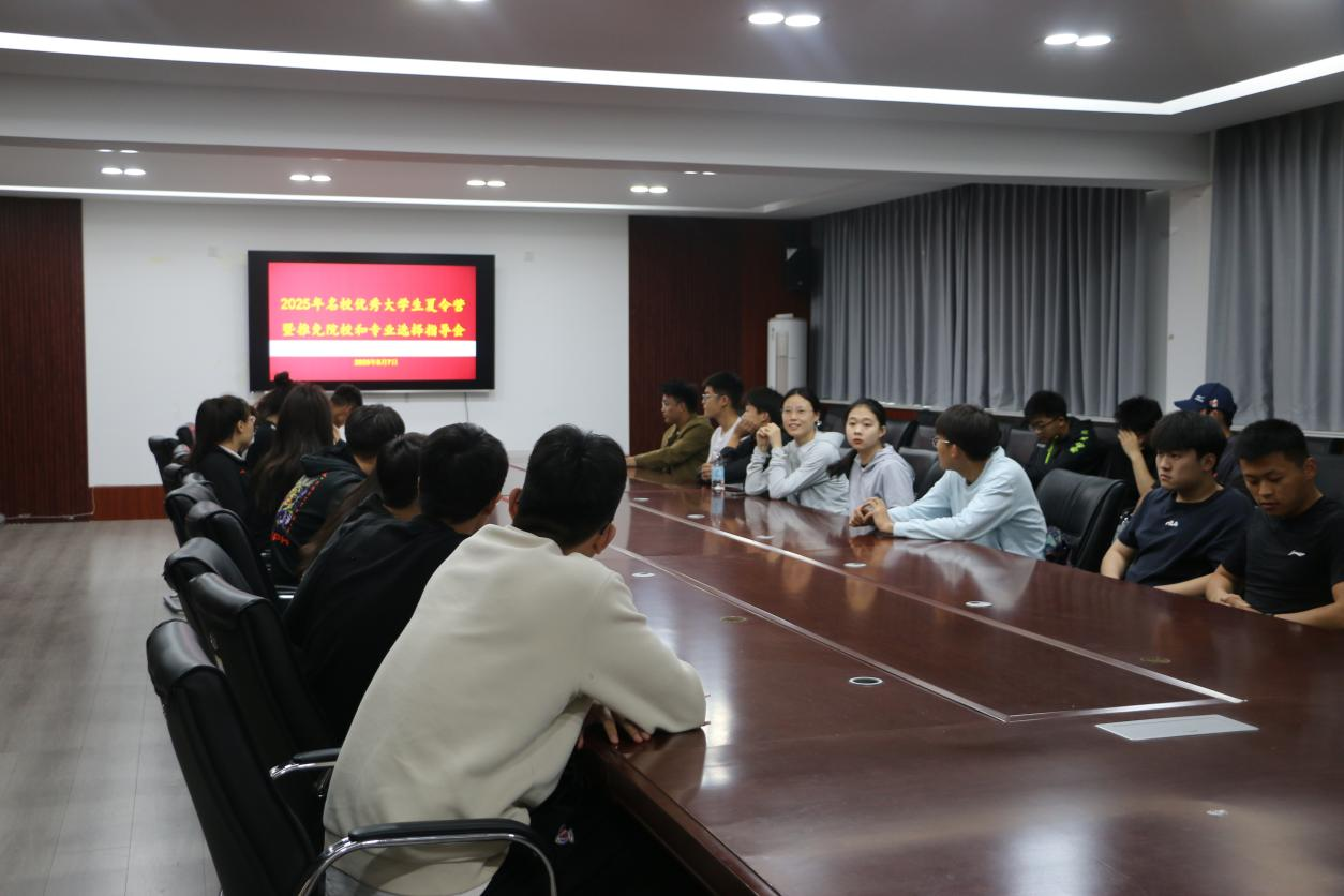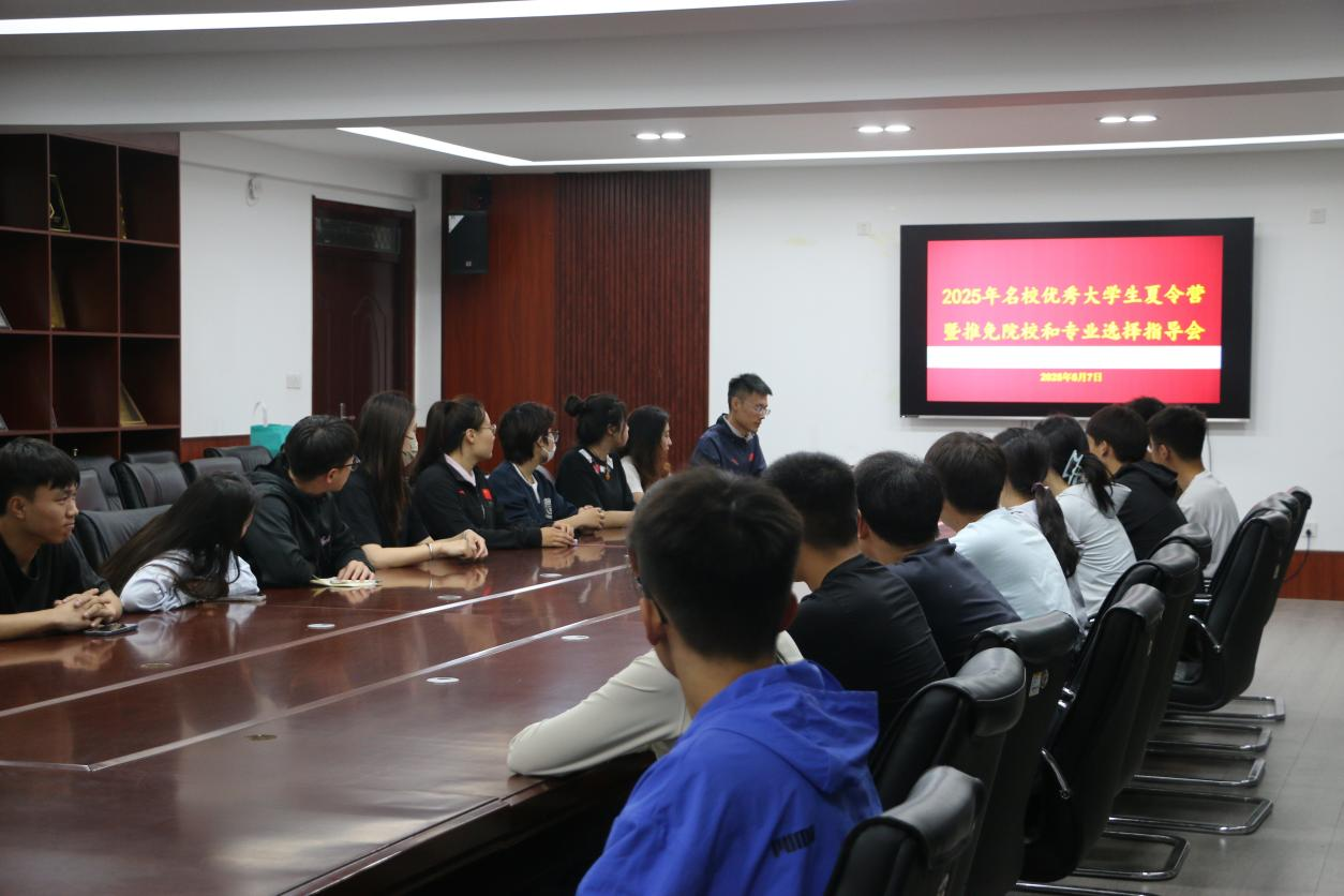 于召开2025年名校优秀大学生夏令营暨推免院校和专业选择指导会。2021级辅导员栾永鑫担任主讲人,2022级各专业绩点成绩排名前10%优秀学生以及众多有志于推免深造的学生,共同聆听经验分享与成长建议。