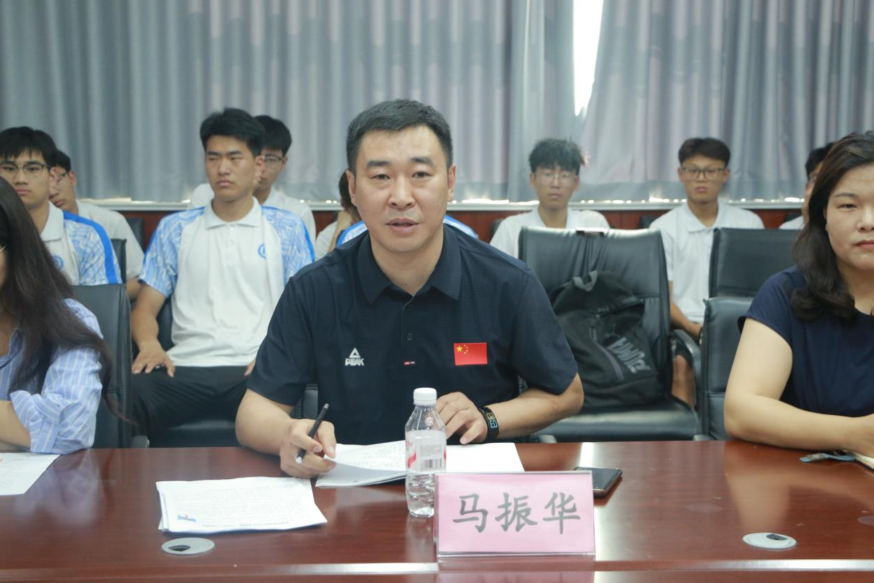 体育学部党委副书记马振华对第八届团委、学生会工作提出要求。马书记表示,第八届团委、学生会应筑牢思想根基,把握政治方向,深入学习党的理论知识,积极开展思想政治教育活动,引领同学们坚定理想信念,将个人成长与国家发展紧密相连。