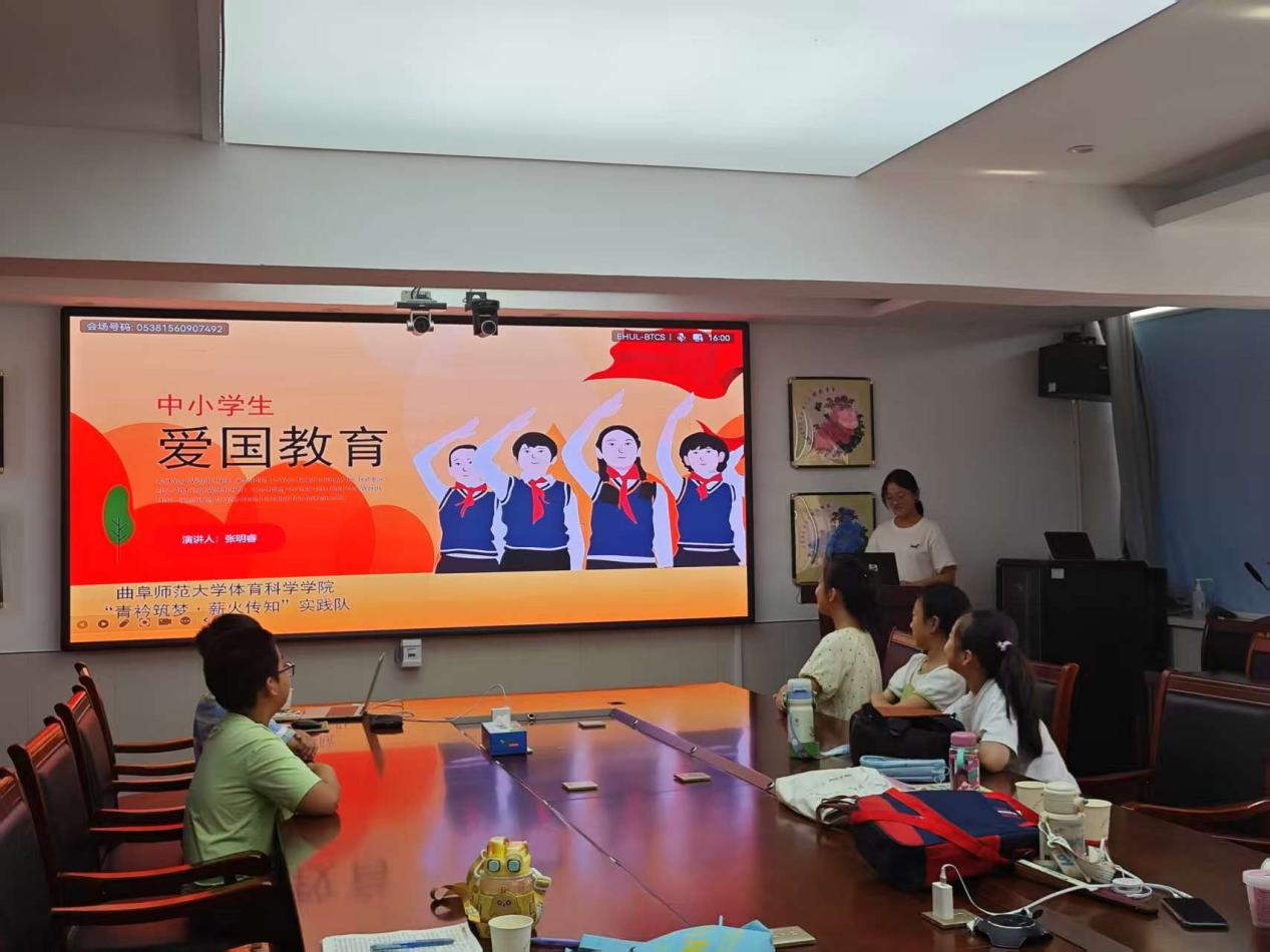 讲述、互动、感悟——内容鲜活生动,氛围庄重热烈。实践队队员率先以“百年党史中的青春力量”为主题开讲,通过革命先辈的青春故事、体育事业中的红色印记等鲜活案例,将党史知识转化为可触可感的成长养分,引来学生们的专注聆听。为让不同年龄段的学生都能深入理解,队员们提前设计了三级学习方案:基础组“党史故事·初心启蒙”、进阶组“精神解读·信念培育”、实践组“行动感悟·责任传承”。随后,队员们按学生认知水平分组,从党史脉络梳理、红色精神内涵到当代青年使命,逐一耐心讲解引导。