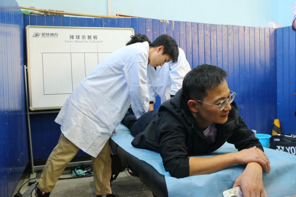 充分发挥“体医融合”专业优势,近日,学院研究生会组织“运动防护与康复团队”在赛事期间设立专项服务点,为参赛选手们提供专业的赛后放松、运动按摩与康复指导服务,赢得了运动员们的广泛好评。